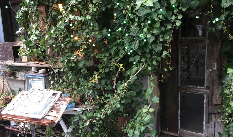 もう入り口からワクワクしてしまいました! 秘密基地のような入り口で、中には猫が。