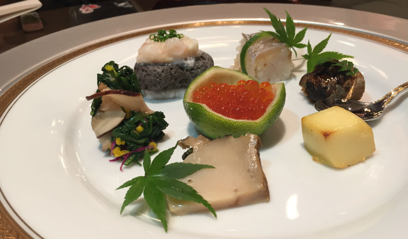 最初は前菜!!もう全てが繊細でした。味も盛り付けも。全てが美しすぎて左上の鮎の石焼の石までかぶりつきそうになりました。