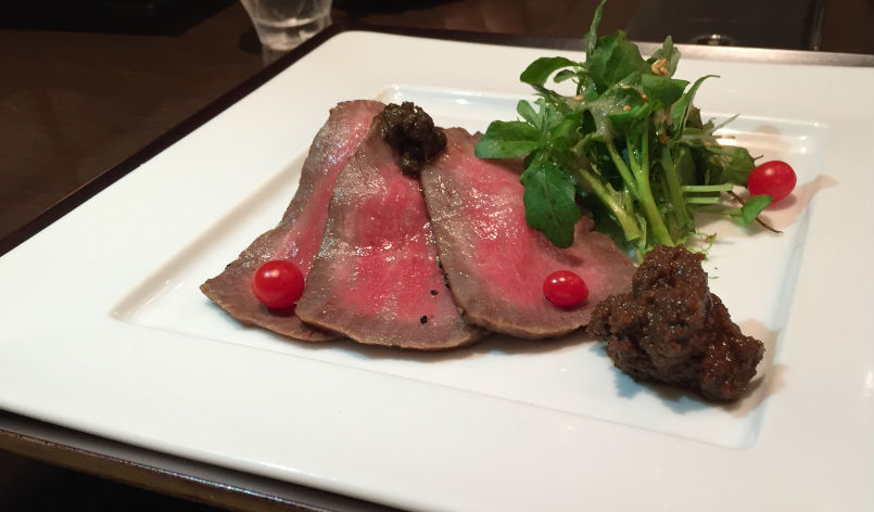 黒毛和牛のローストビーフ、フカヒレ茶碗蒸し、のどぐろ、稲庭うどんの酸辣湯麺